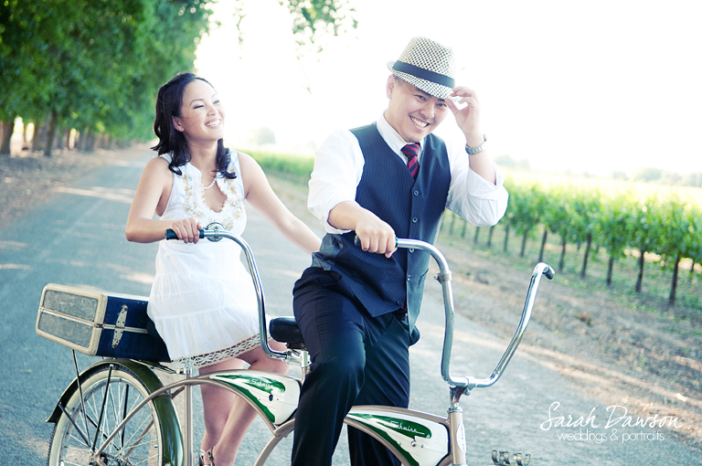 Here is Angela and Cuong’s epic engagement session photographed over the weekend.   This session had almost a little bit of everything in it.  We went all over the Sacramento photographing this session.  Special thanks to College Cyclery and Sac Cycle Chic for helping us procure the tandem schwinn to complete the look for our shoot.  And of course the artistic entourage that helped, encouraged and goofed off to make this session a blast: Greg Montanio, Alan Silva with Artistic imagery and my husband Rob.