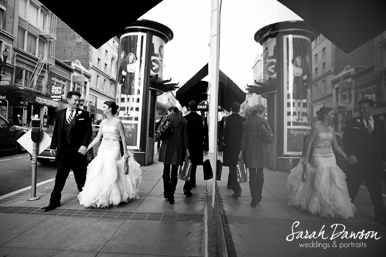 I have a ongoing love affair with San Francisco. I always have… Every time I drive the 4.4 mile span of the Bay Bridge I peer up the columns carrying the swooping support cable into the sky and think about how fortunate I am to live within 100 miles of this fantastic city. A while back I arrived on a typically windy morning at Union Square’s Sir Francis Drake hotel to photograph Maggie and Dan’s wedding day. My very first wedding in this city happened to be at this beautiful venue and at the time I was assisting as a second shooter with my mentor and friend Scott Robert Lim. Having had the pleasure of working with a number of hotels surrounding it over the past 5 years or so, I have to say it brought me great satisfaction to walk through the doors rolling my equipment bag behind me with my OWN assistant in tow 🙂 The ceremony was a short distance away at St Patrick’s church… After which, we managed to get all the way over to Fort Point for portraits and then meandered our way back through the city to enjoy a lovely reception in the grand ballroom at the hotel! I’m honored to have been chosen to help tell and preserve forever THIS portion of Maggie and Dan’s love story and wish them the very best 🙂